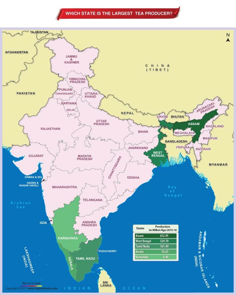 | Rank | State | Estimated Production (Million kg) | Famous Tea Type | Key Districts | Export Contribution |