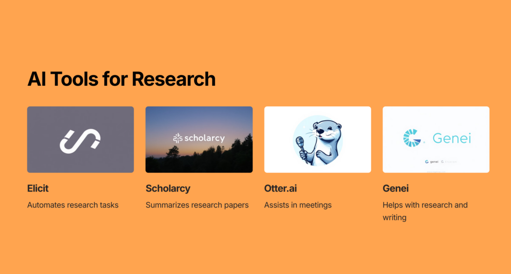 Research and note-taking are critical components of the academic process. AI tools can simplify these tasks by summarizing information, identifying relevant sources, and generating citations.