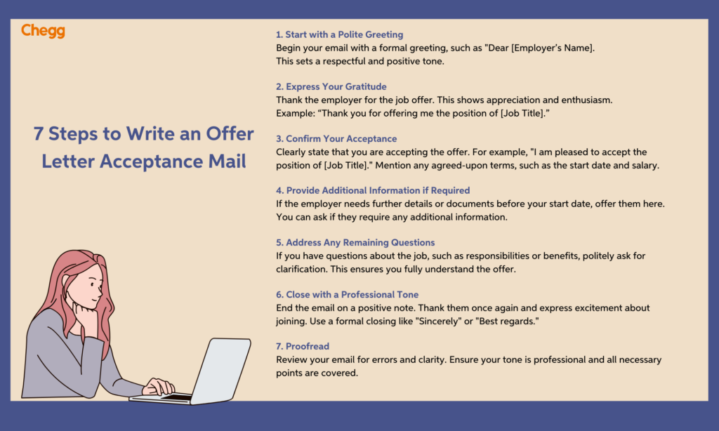 Writing an offer letter acceptance mail can sometimes be tricky. To make it easier, follow this step-by-step guide to formally accept the offer.