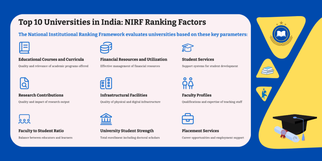 After a comprehensive evaluation of these parameters, NIRF assigns a score to each university, creating a list of the top 10 out of over 1000 universities in the country.