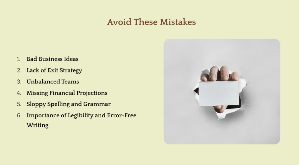 • Avoid common mistakes like unclear ideas and missing financials for success.