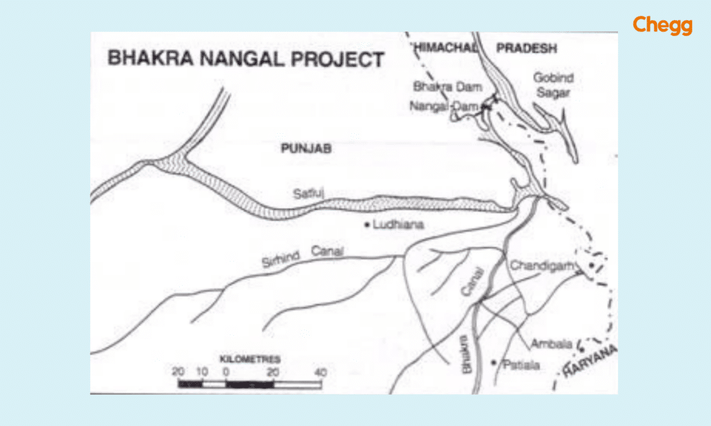 The Bhakra Nangal Project is situated on the Sutlej River and is designed to store the river’s flow and rainwater. The neighboring states utilize the power from the dam and receive irrigation water to support their rural development. The Bhakra Nangal project is the object of providing irrigation for states, more specifically Punjab, Haryana, Himachal Pradesh, Chandigarh, Delhi, and Rajasthan. These states also obtain the electricity they require from the powerhouses of this dam project, and thus, the Bhakra Nangal project is also used to provide a power supply to these states.