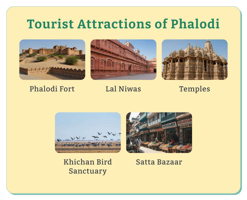 • Attractions include Phalodi Fort, Khichan Bird Sanctuary, and ancient temples. Efforts to balance tourism with environmental conservation focus on sustainable practices to combat desertification and water scarcity.