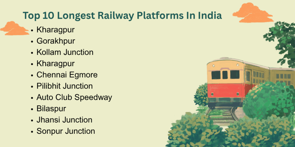 Significant railway stations are key transportation hubs in India’s extensive railway network. This section will explore the top 10 longest railway platforms in India, each offering unique geographical importance and a range of passenger services. These platforms are crucial for managing large volumes of travelers and ensuring smooth operations across the rail system.