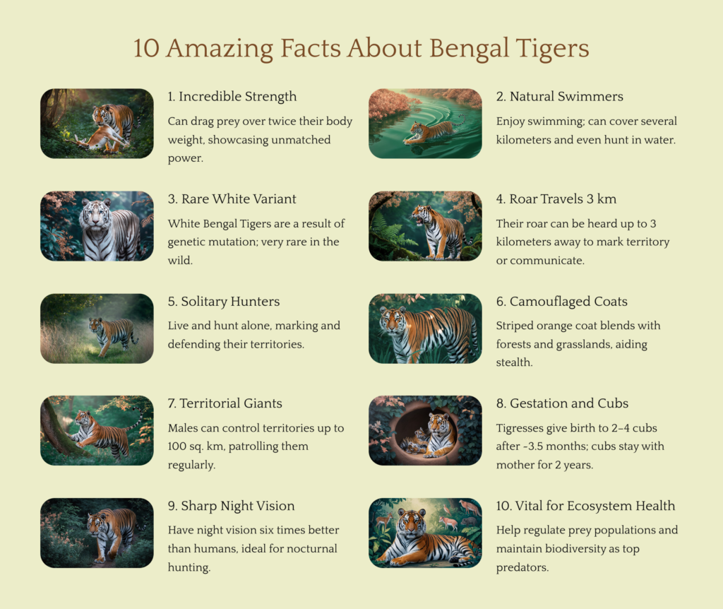 These Bengal tiger facts for students make the animal fascinating and emphasize its importance as the national animal of India.