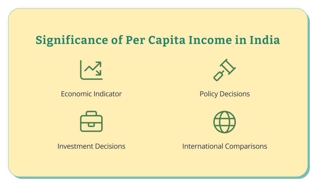 Economists and policymakers use per capita income to evaluate a nation’s economy and living standards. Global per capita incomes compare countries’ prosperity. Economic productivity and living standards increase with per capita income. For example, the Indian per capita income 2024 data shows signs of economic recovery and growth.