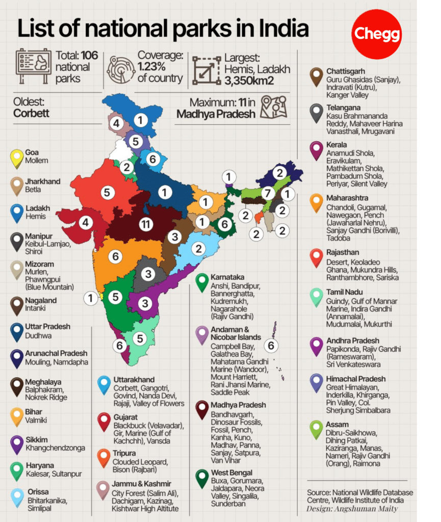 National Parks are vast areas of land preserved by the government for the enjoyment of the public and the protection of natural ecosystems. These areas often feature diverse landscapes, including forests, mountains, and water bodies, and are home to a wide variety of plant and animal species. National parks have more rules and regulations than sanctuaries and they do not allow any human activity.