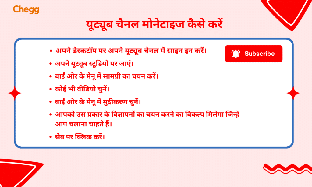 | 6 | YouTube Partner Program के लिए आवेदन करना | शर्तें पूरी होने के बाद YPP के लिए अप्लाई करें। |