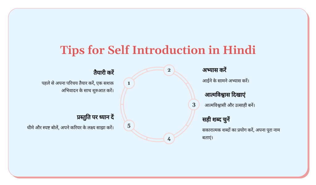 इंटरव्यू में आत्म-परिचय देना एक महत्वपूर्ण हिस्सा होता है। एक अच्छे self introduction in hindi के लिए इन बातों का ध्यान रखें:-