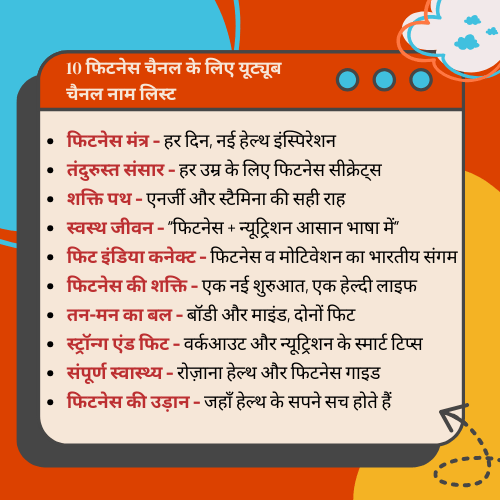 यहाँ फिटनेस चैनल के लिए 10 नए और यूनिक नाम दिए गए हैं, जो आपके चैनल को खास बना सकते हैं। यूट्यूब चैनल नाम लिस्ट-