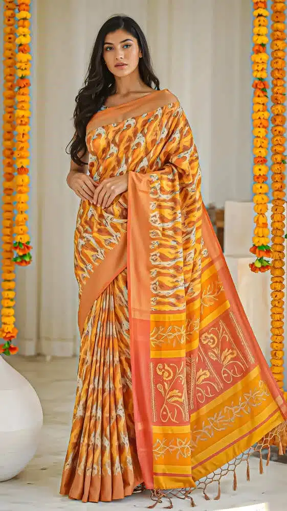 Time to bring out the glam! A vibrant silk saree like a Kanjeevaram or a Banarasi is perfect for the first big day of pandal hopping.