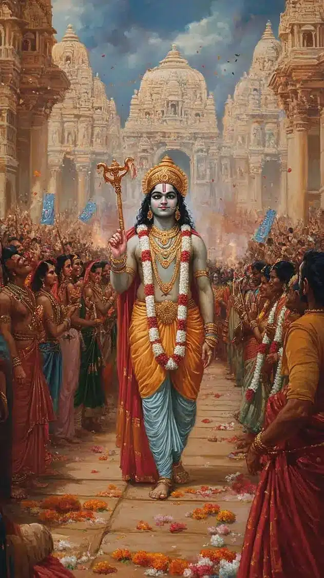 श्रीराम, रावण का वध करते हैं और यह दिन विजयदशमी कहलाता है। इसके बाद श्रीराम का राज्याभिषेक होता है।